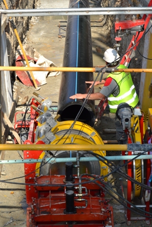 El proyecto contempla la renovación de un tramo de 875 metros de tubería de fibrocemento, mediante el sistema Relining, consistente en la inserción de una nueva tubería de Polietileno de Alta Densidad de 560 mm en su interior. Sinzatec se encuentra actualmente acometiendo las labores de renovación, que se ha ejecutado en tres tramos de 520, 300 y 55 metros de longitud mediante la técnica mixta de tiro y empuje.